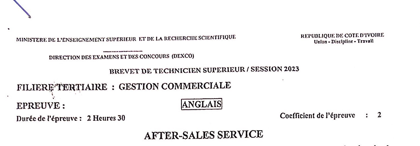 BTS GEC TECHNIQUE DU COMMERCE INTERNATIONAL Session 2023