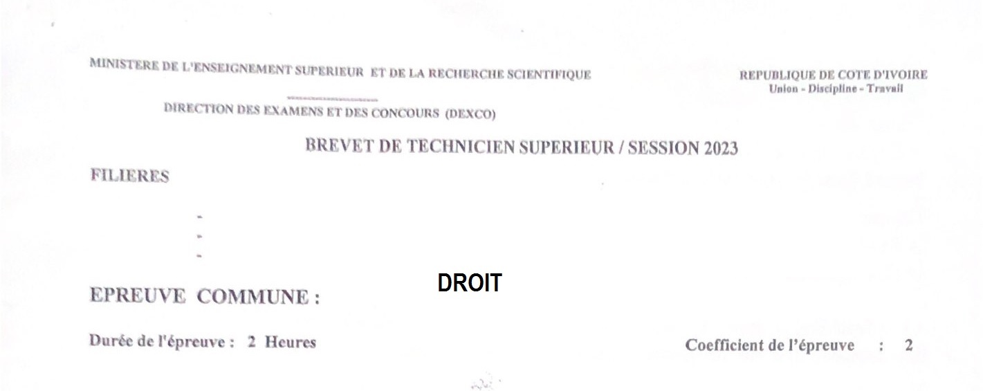 BTS CJPI DROIT DES AFFAIRES ET DROIT DU TRAVAIL Session 2023