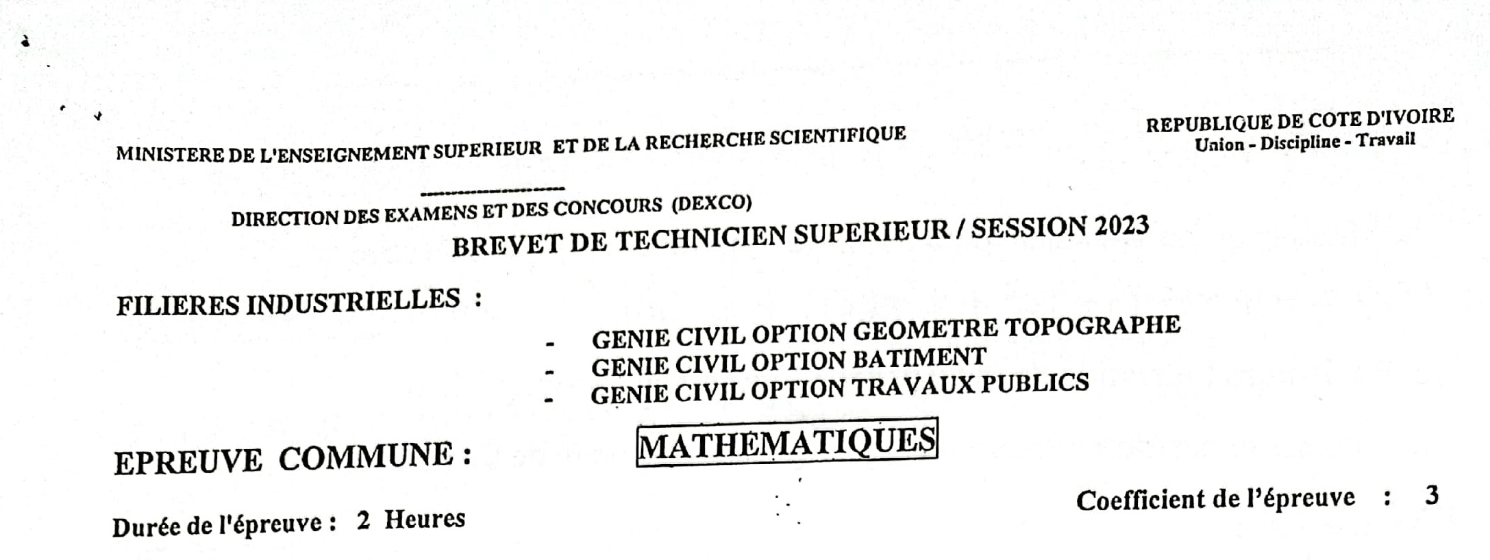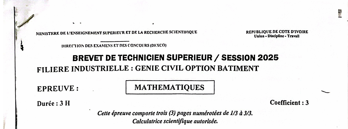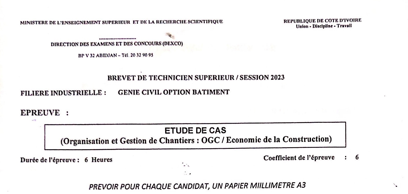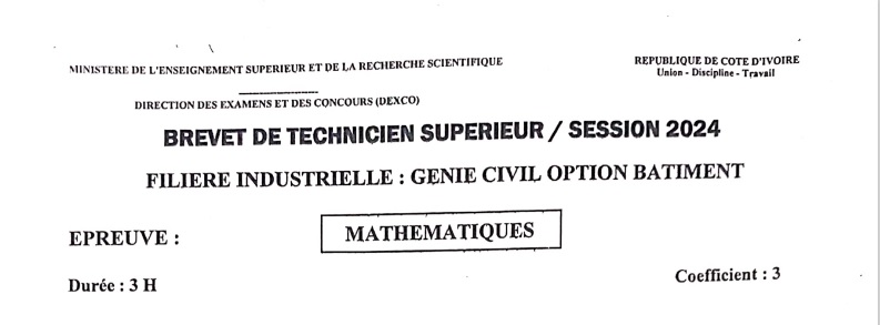 BTS CJPI TECHNIQUE DU BATIMENT Session 2024