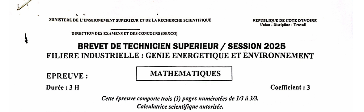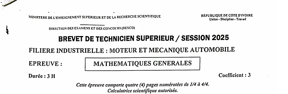 BTS RIT TRAITEMENT DE SIGNAL ET MATHEMATIQUES Session 2025