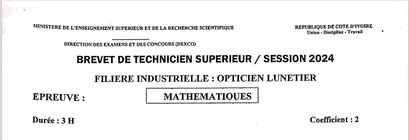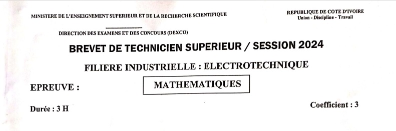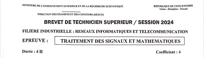BTS RIT TRAITEMENT DE SIGNAL ET MATHEMATIQUES Session 2024
