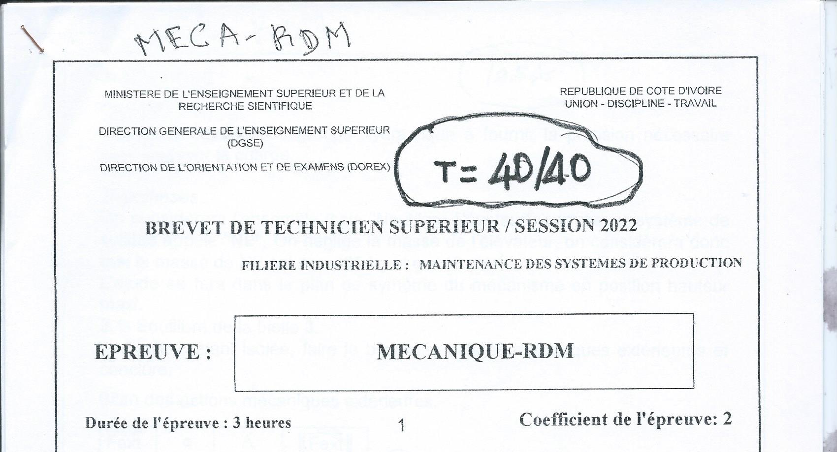 BTS ELEC ETUDE DES SYSTEMES MECANIQUES Session 2022