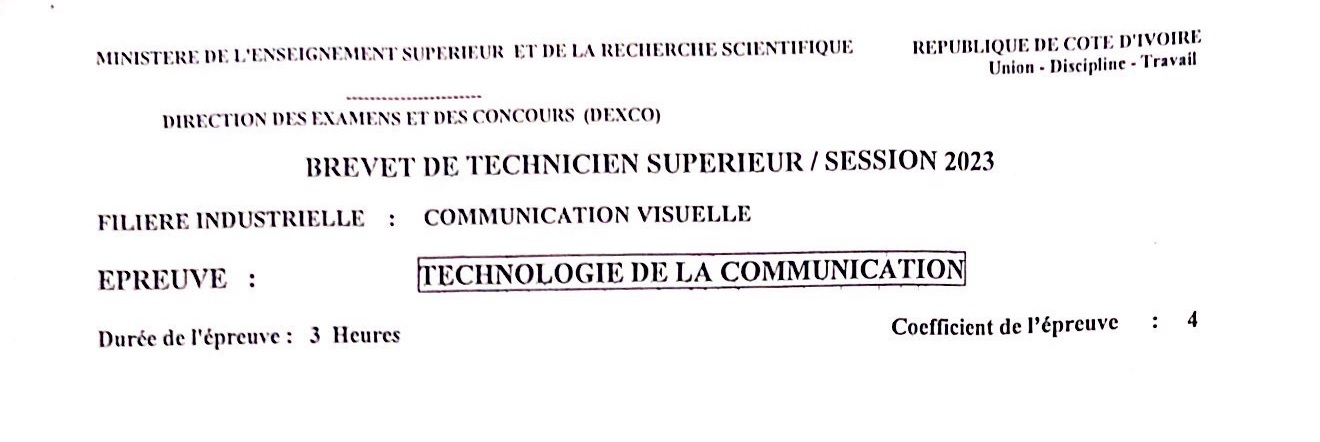 BTS CV TECHNOLOGIE DE LA COMMUNICATION Session 2023