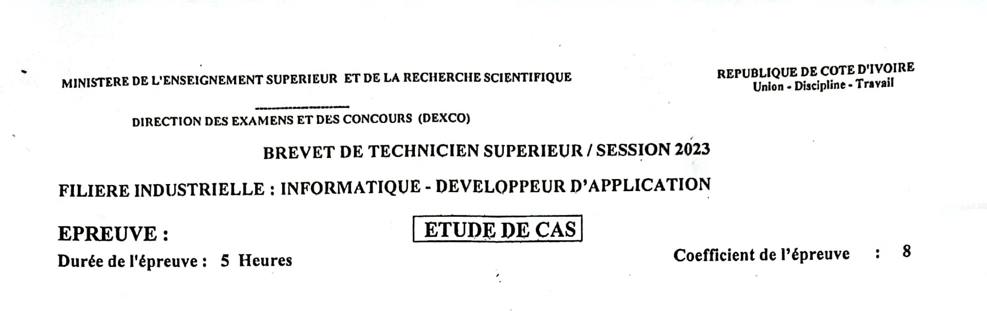 BTS IDA EPP INFORMATIQUE DEVELOPPEUR APPLICATION Session 2023