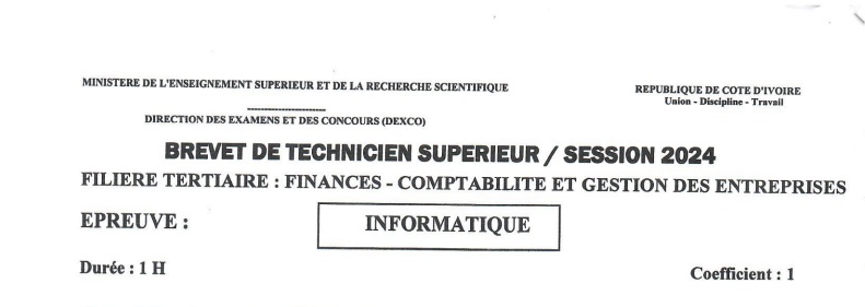 BTS FCGE INFORMATIQUE Session 2024