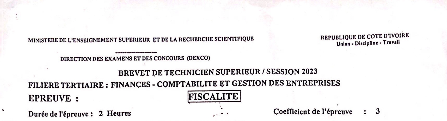 BTS FCGE FISCALITE Session 2023