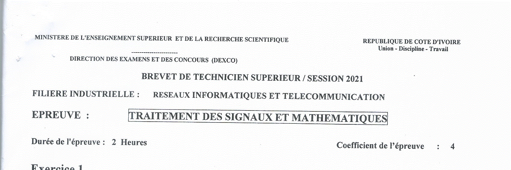 BTS RIT TRAITEMENT DE SIGNAL ET MATHEMATIQUES Session 2021