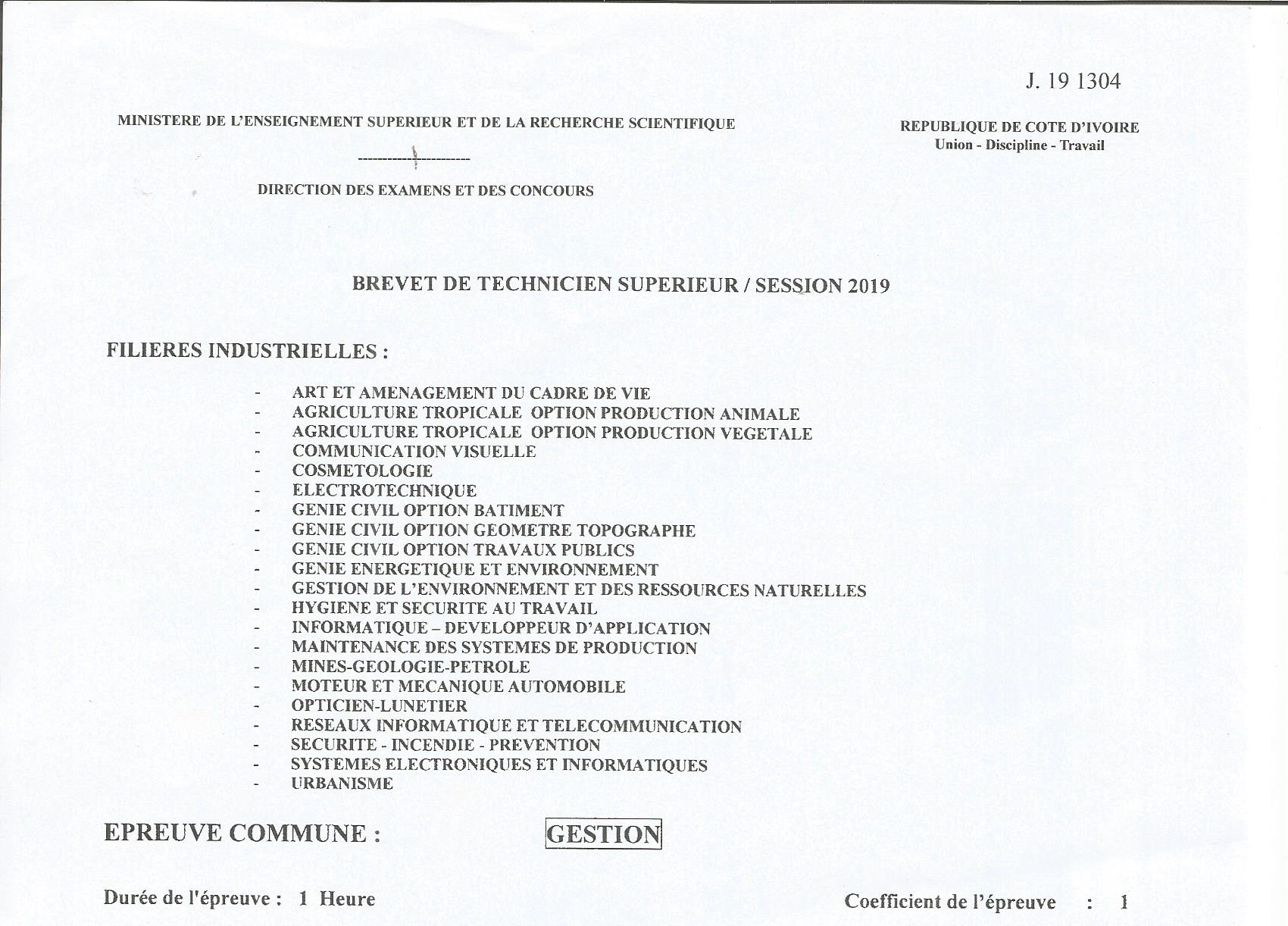 BTS CV GESTION Session 2019