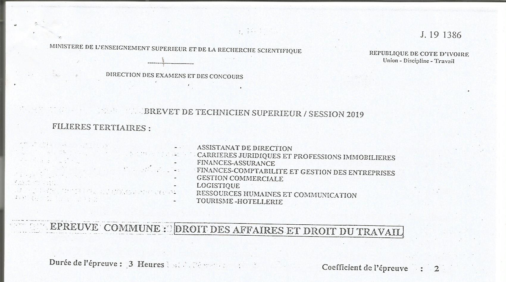 BTS AD DROIT DES AFFAIRES ET DROIT DU TRAVAIL Session 2019