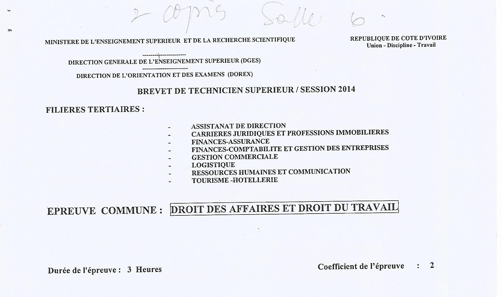 BTS AD DROIT DES AFFAIRES ET DROIT DU TRAVAIL Session 2014