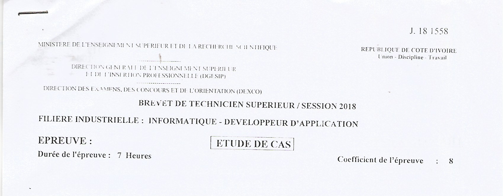 BTS AD TECHNIQUES QUANTITATIVES DE GESTION Session 2018