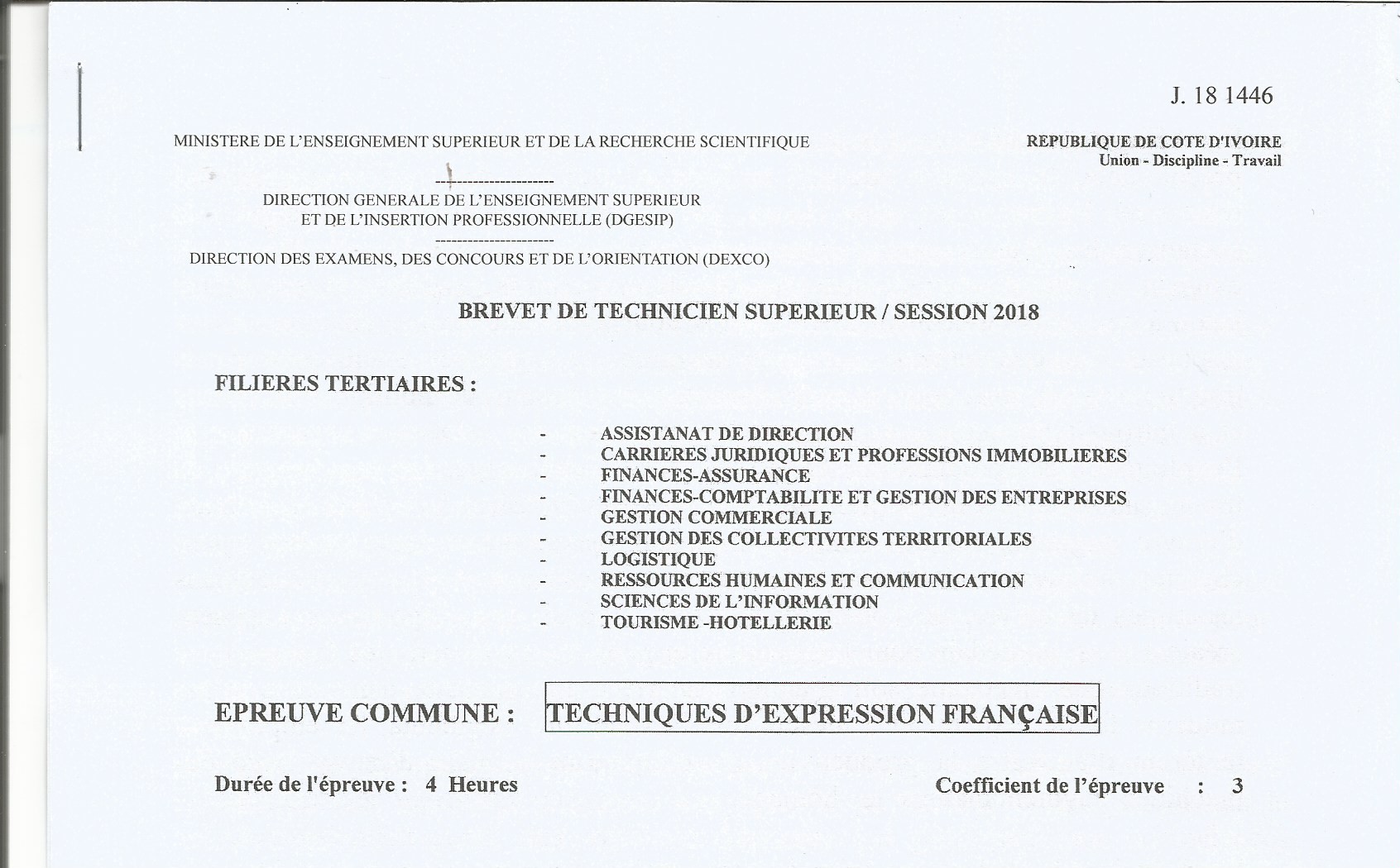 BTS AD TECHNIQUES DEXPRESSION FRANCAISE Session 2018