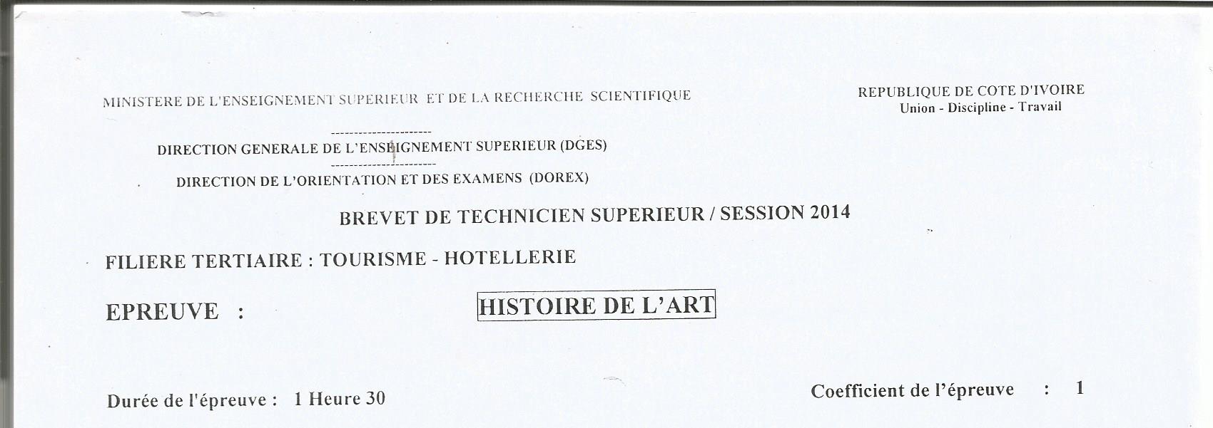 BTS TH HISTOIRE DE L'ART Session 2014