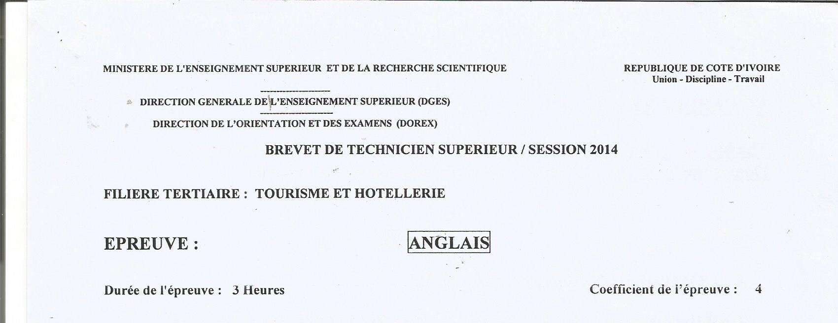 BTS TH ANGLAIS Session 2014