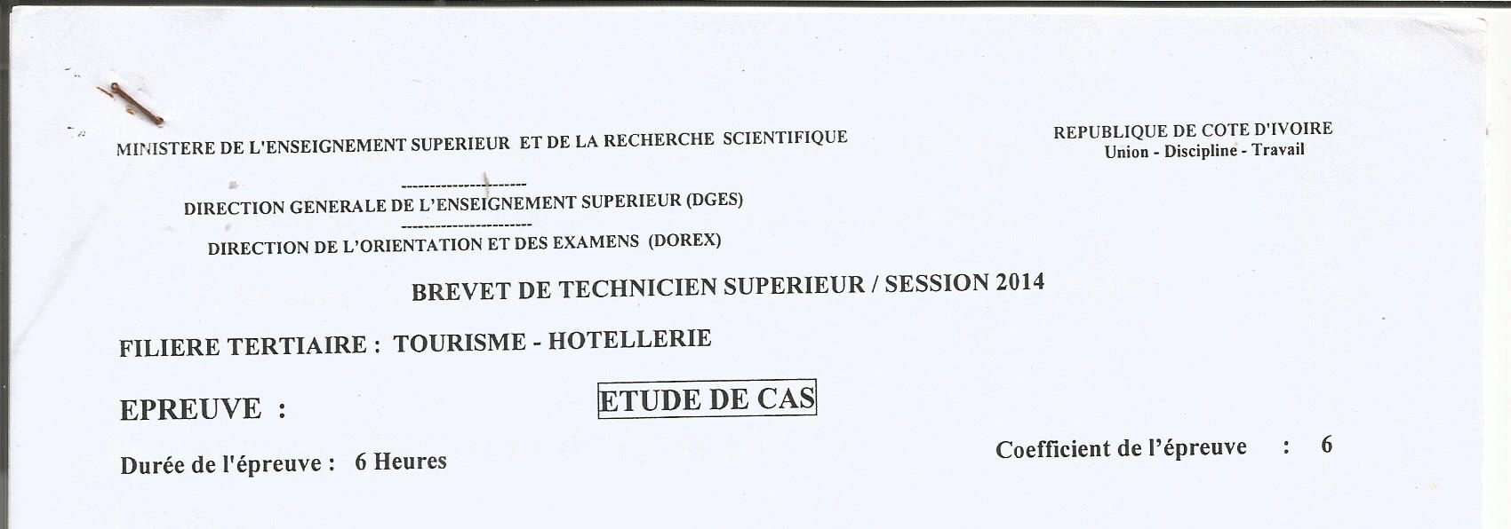 BTS TH ETUDE DE CAS Session 2014