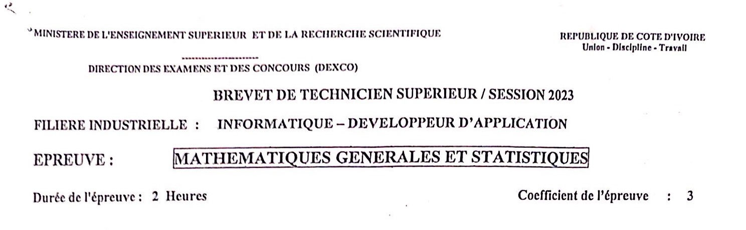 BTS IDA MATHEMATIQUES Session 2023