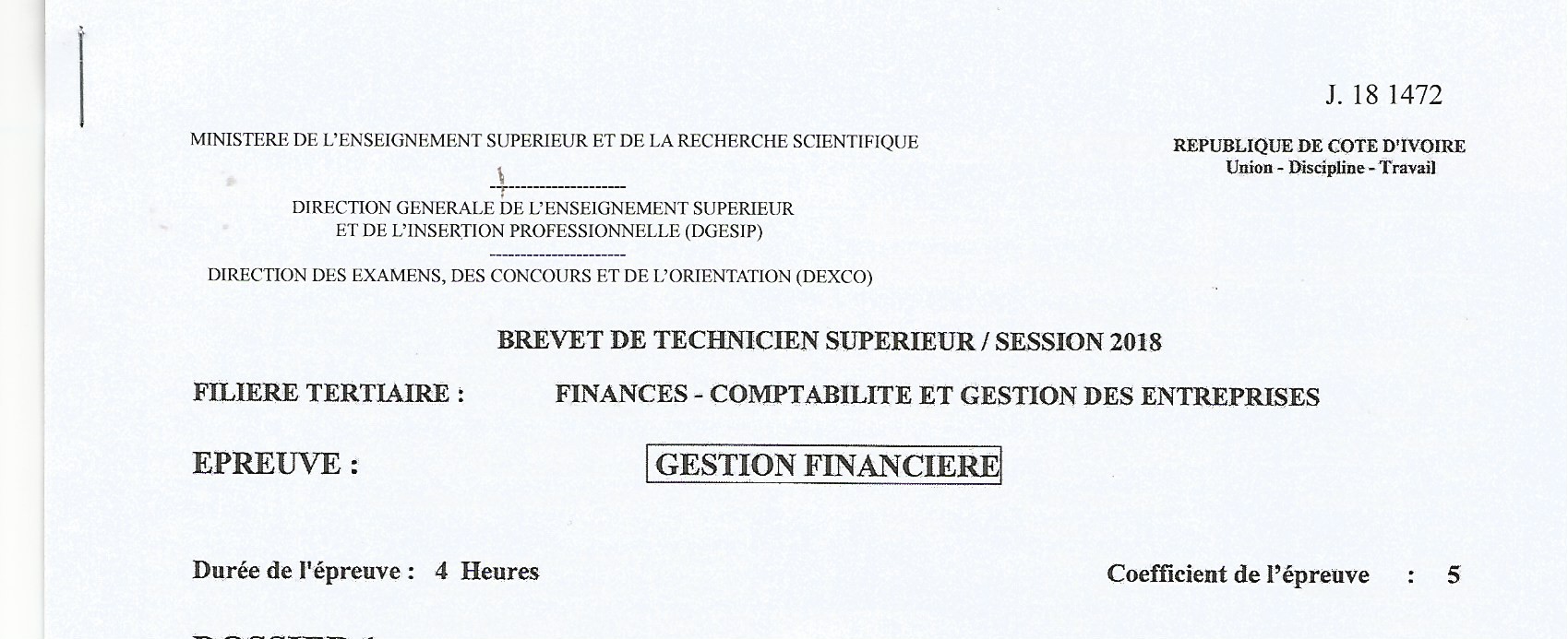 BTS FCGE GESTION FINANCIERE Session 2018