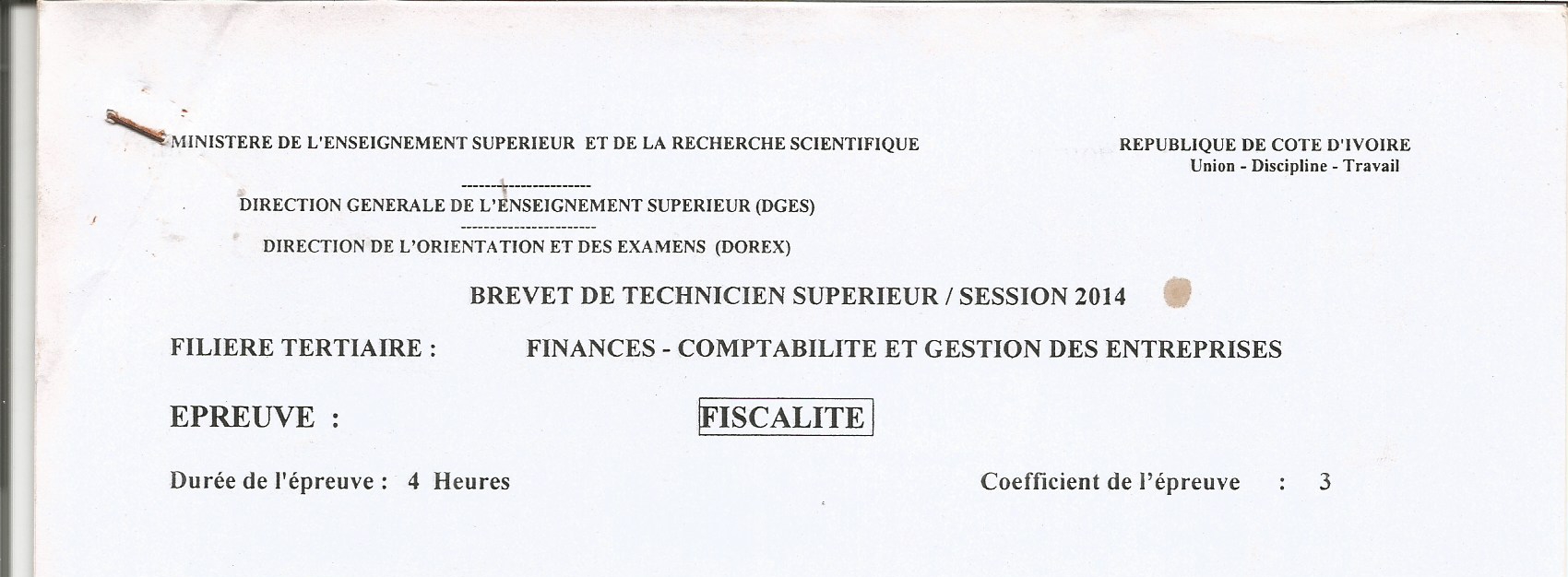 BTS FCGE FISCALITE Session 2014