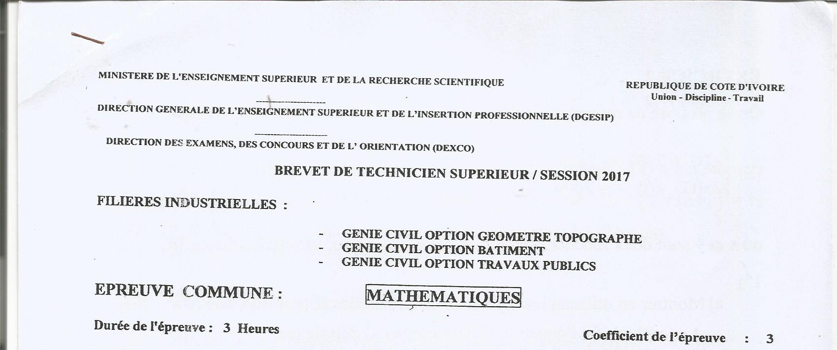 BTS GGT MATHEMATIQUES Session 2017