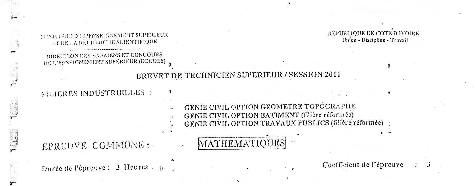 BTS GGT MATHEMATIQUES Session 2011