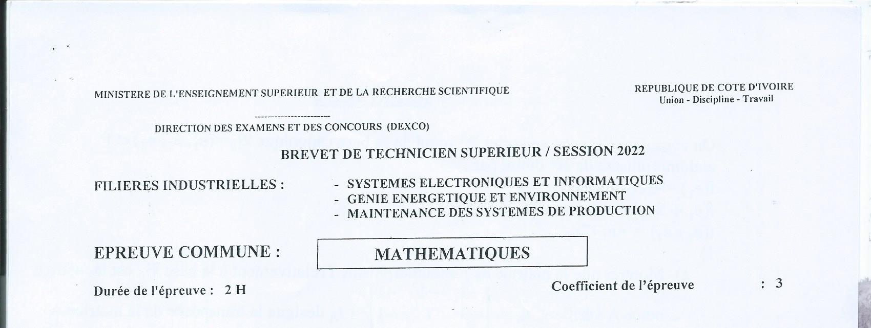 BTS SEI MATHEMATIQUES Session 2022