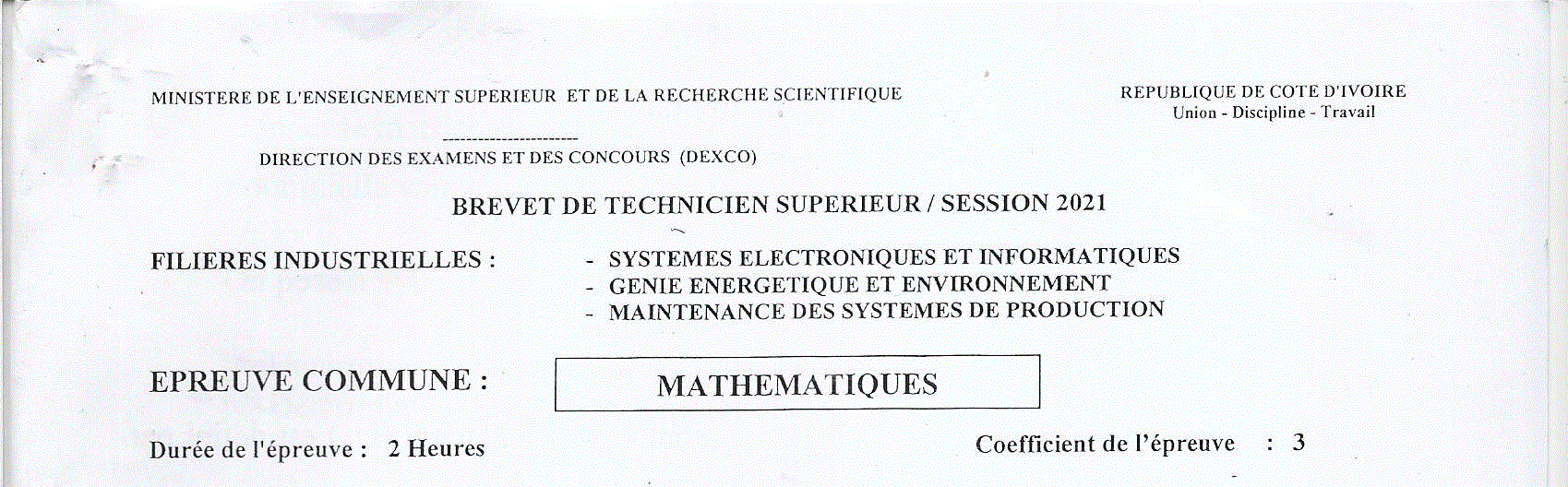 BTS SEI MATHEMATIQUES Session 2021
