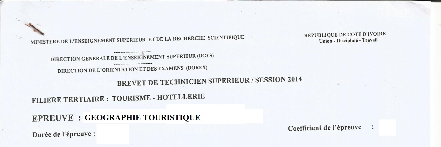 BTS TH GEOGRAPHIE TOURISTIQUE Session 2014 CORRIGE UNIQUEMENT
