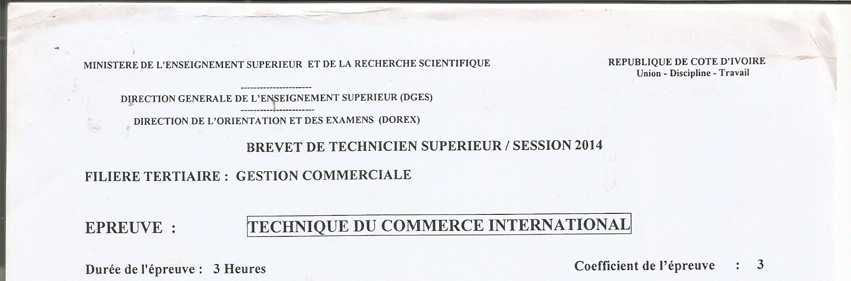 BTS GEC TECHNIQUE DU COMMERCE INTERNATIONAL Session 2014