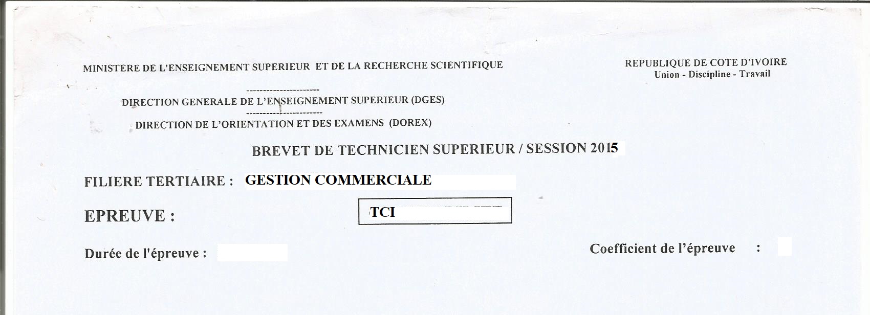 BTS GEC TECHNIQUE DU COMMERCE INTERNATIONAL Session 2015