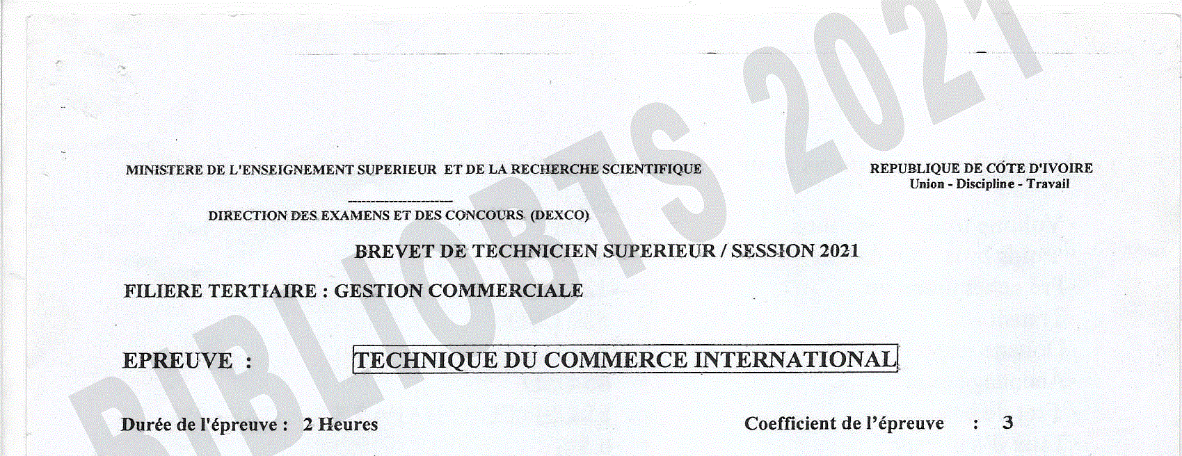 BTS GEC TECHNIQUE DU COMMERCE INTERNATIONAL Session 2021