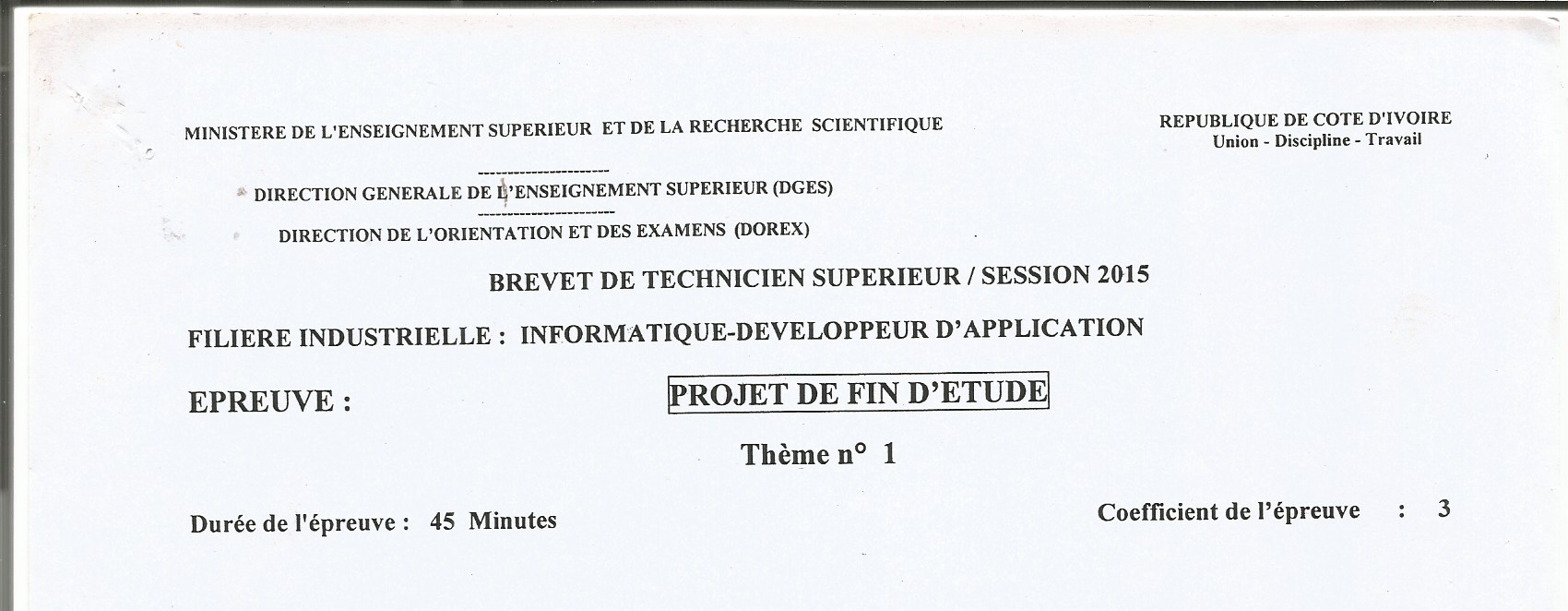 Sujets - INFORMATIQUE-DEVELOPPEUR D APPLICATION / PROJET