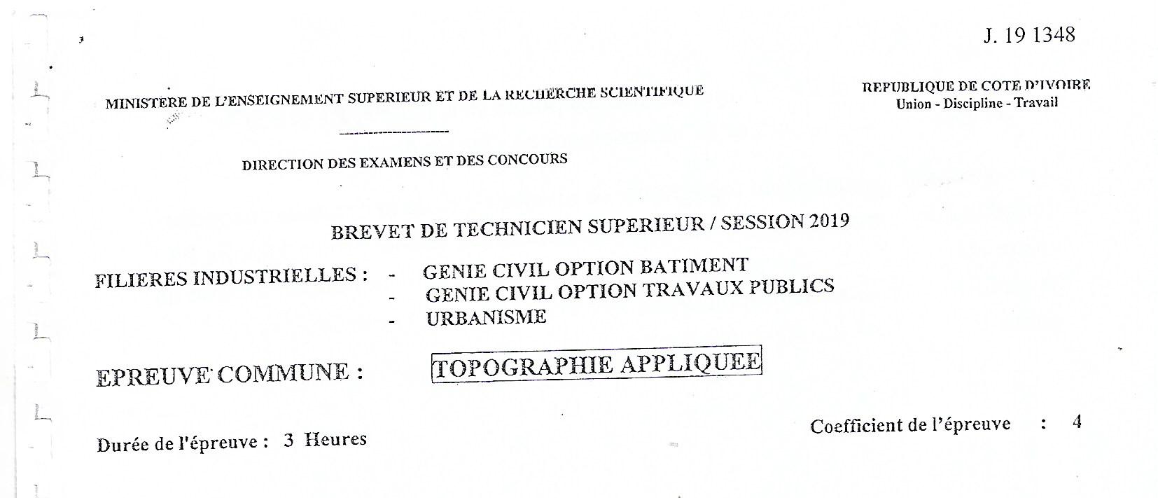 BTS GTP TOPOGRAPHIE APPLIQUEE Session 2019