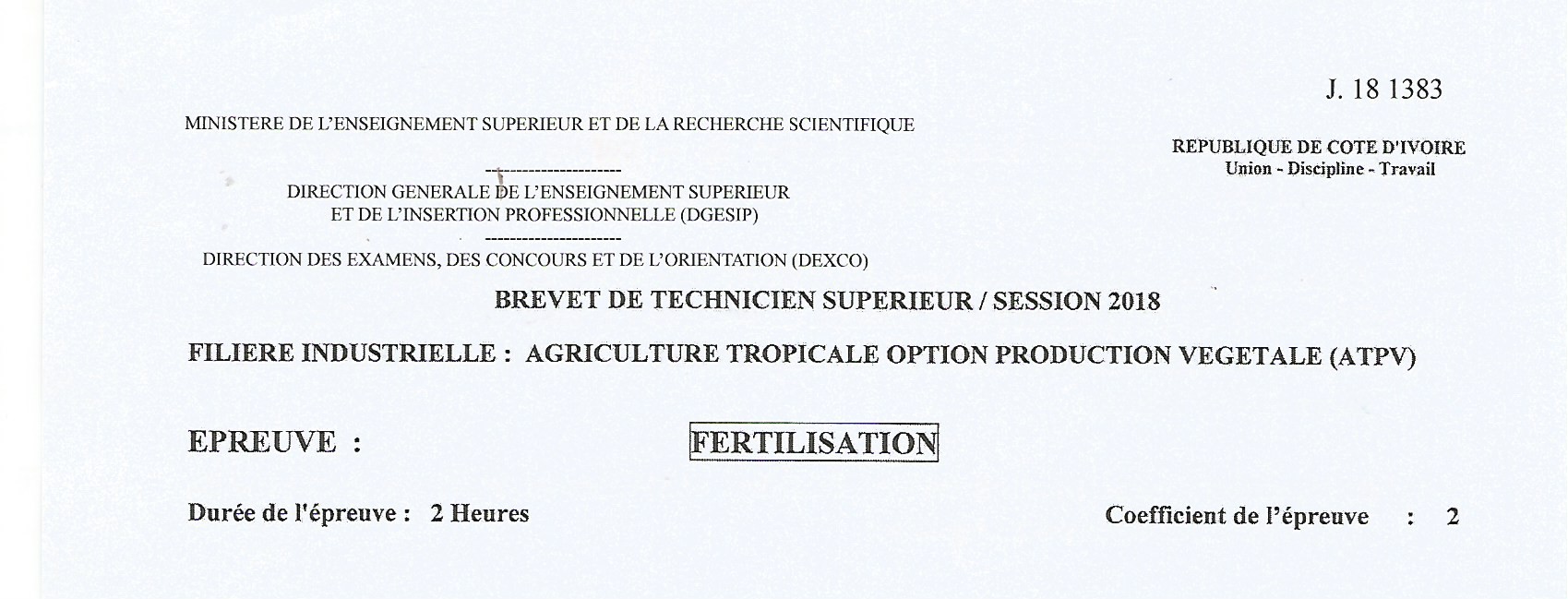 Sujets - AGRICULTURE TROPICALE DE PRODUCTION VEGETALE / FERTILISATION