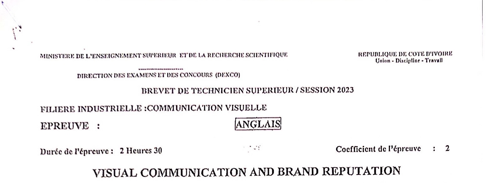 Sujets - COMMUNICATION VISUELLE / ANGLAIS