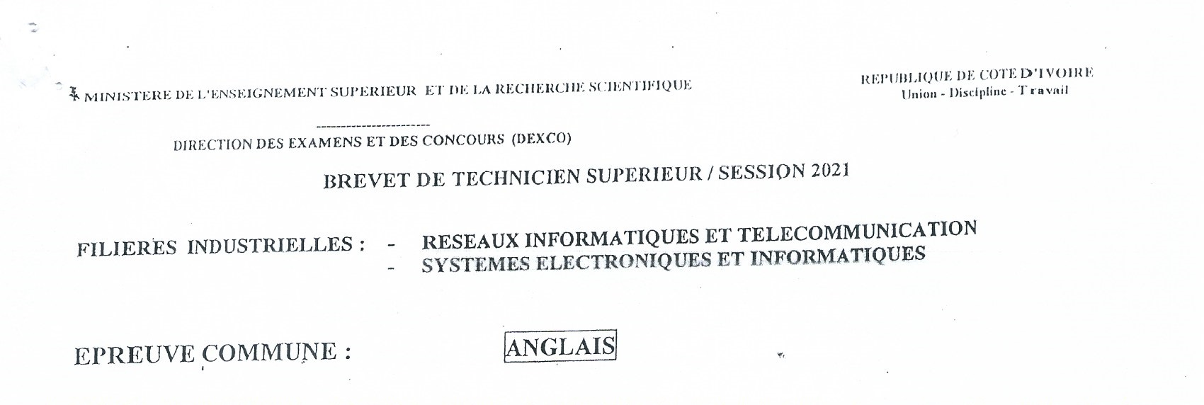 Sujets - RESEAUX INORMATIQUE ET TELECOMMUNICATION / ANGLAIS