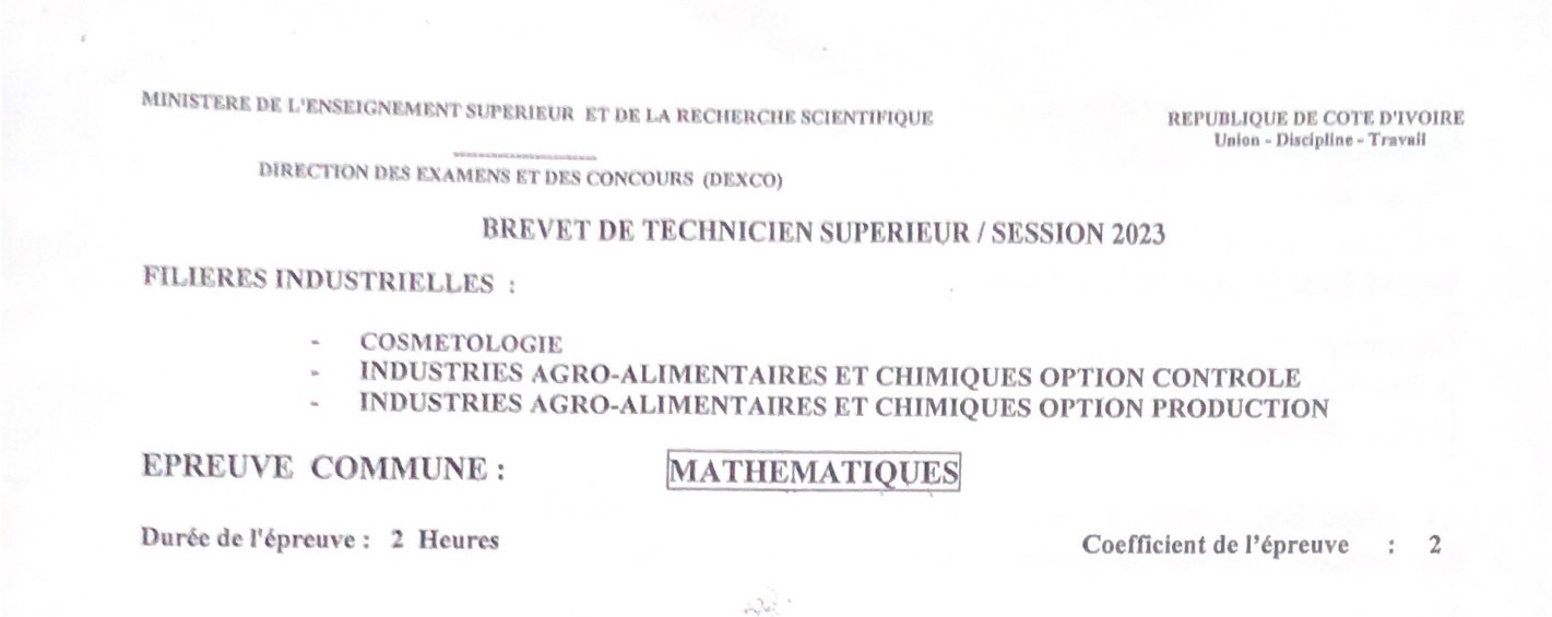 BTS RIT TRAITEMENT DE SIGNAL ET MATHEMATIQUES Session 2024