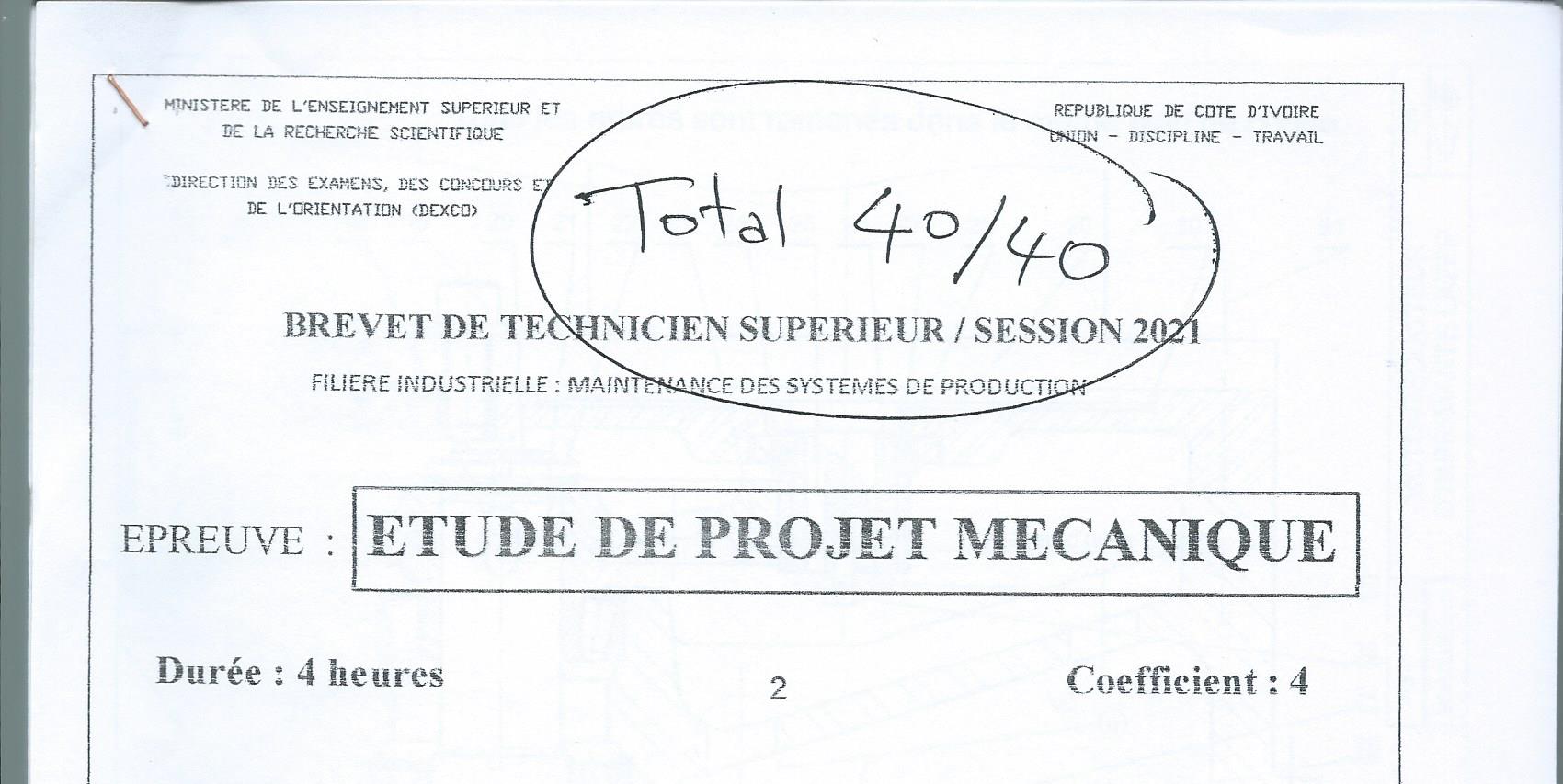 BTS MSP ETUDE DE PROJET MECANIQUE Session 2022