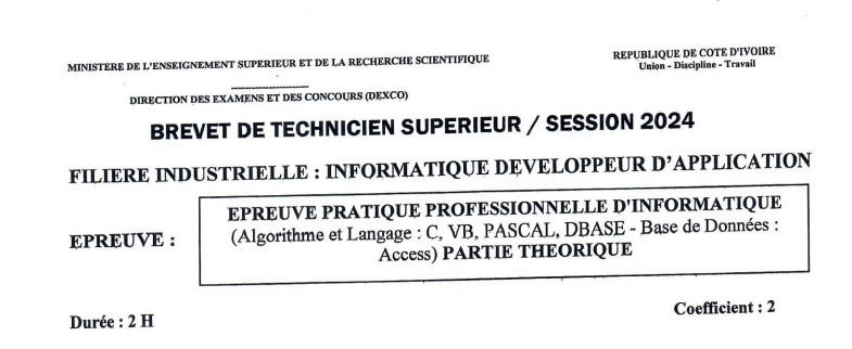 BTS IDA EPP THEORIQUE IDA Session 2024