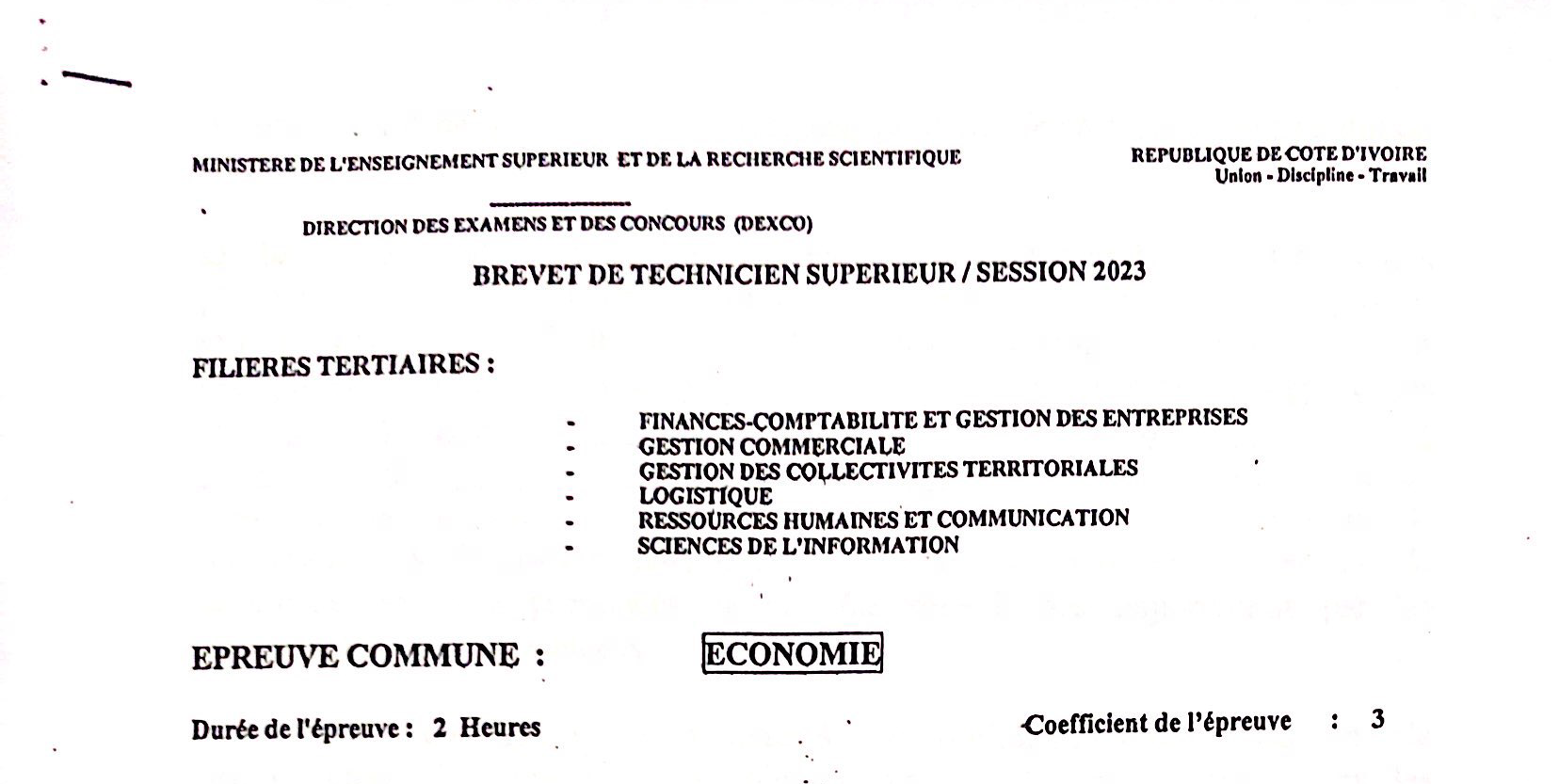BTS FCGE ECONOMIE Session 2023