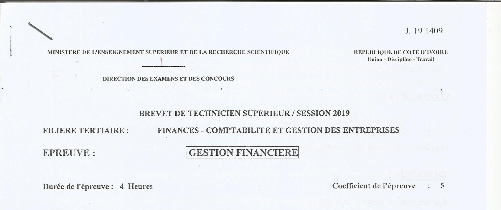 BTS FCGE GESTION FINANCIERE Session 2019