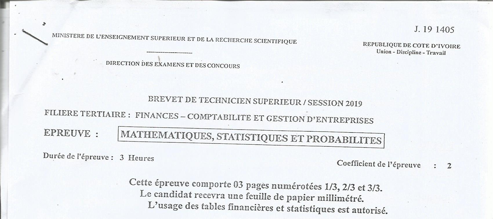 BTS FCGE MATHEMATIQUES Session 2019