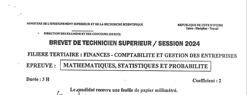 BTS FCGE MATHEMATIQUES Session 2024