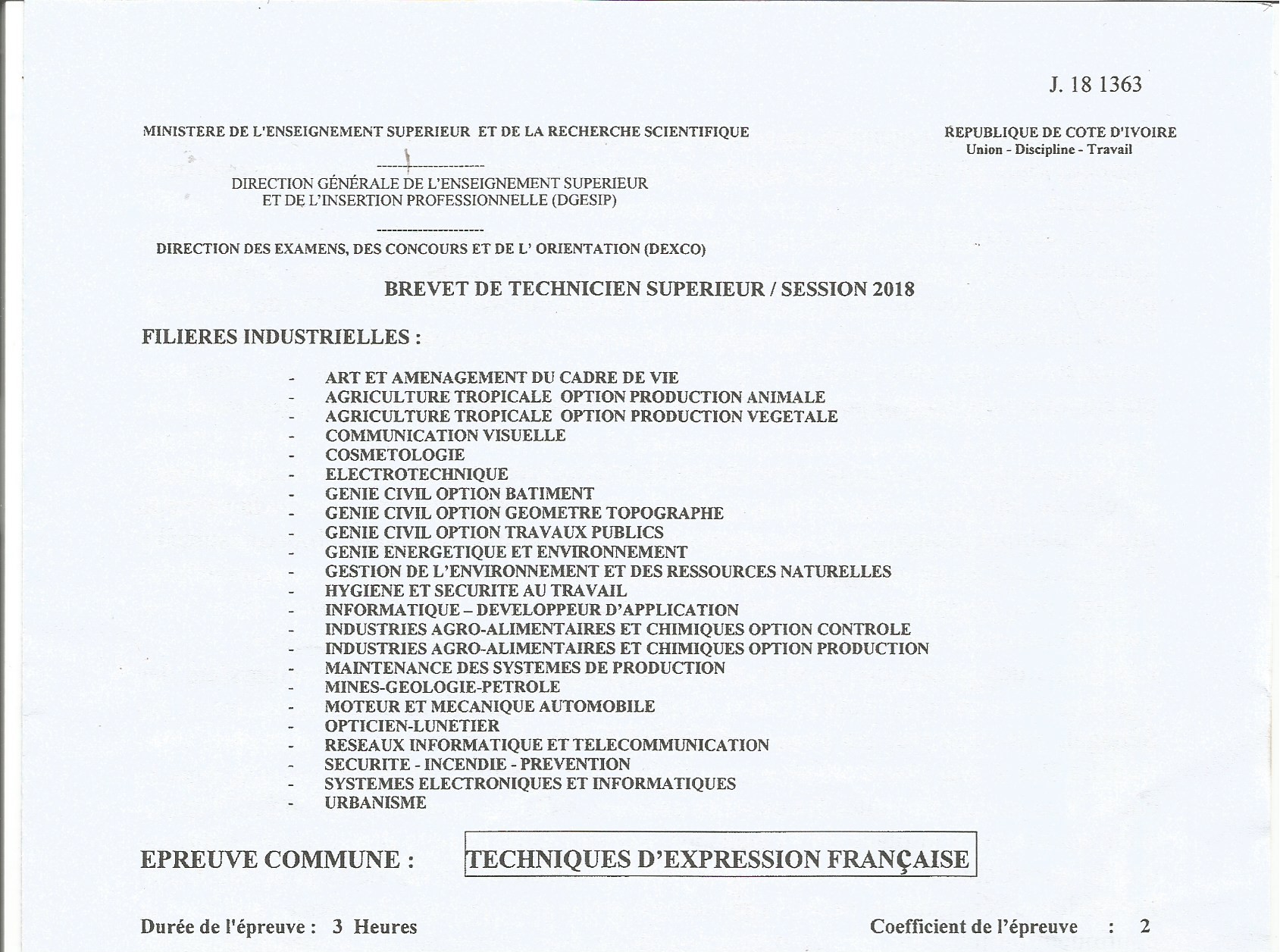 BTS RIT TECHNIQUES DEXPRESSION FRANCAISE Session 2018