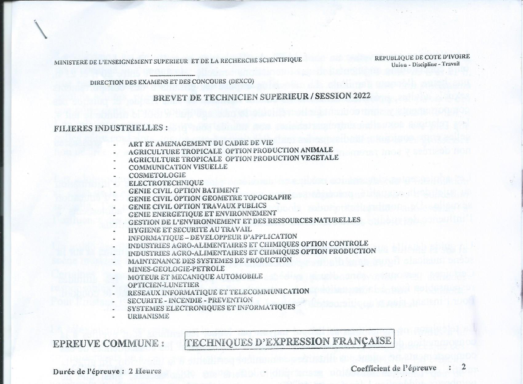 BTS RIT TECHNIQUES DEXPRESSION FRANCAISE Session 2022