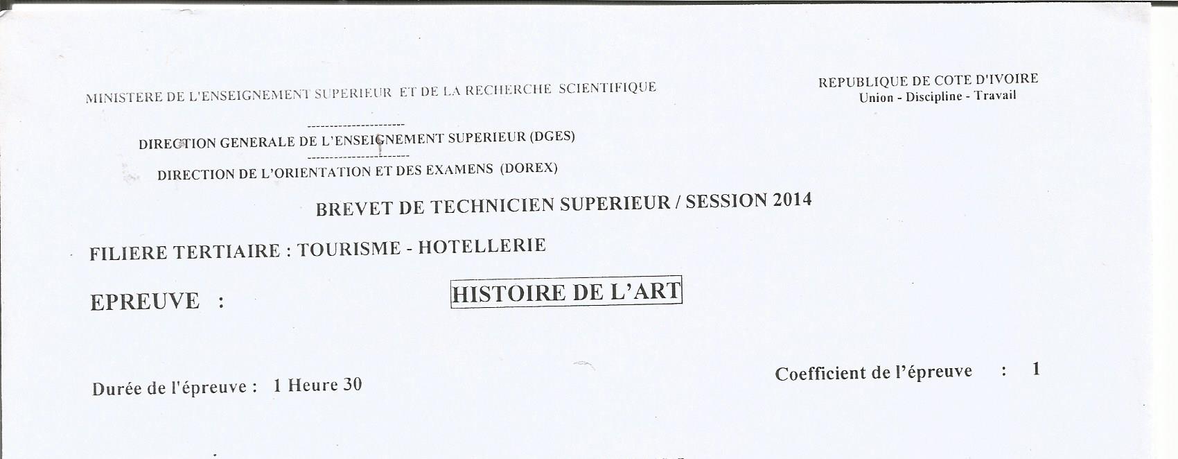 BTS TH HISTOIRE DE L'ART Session 2014