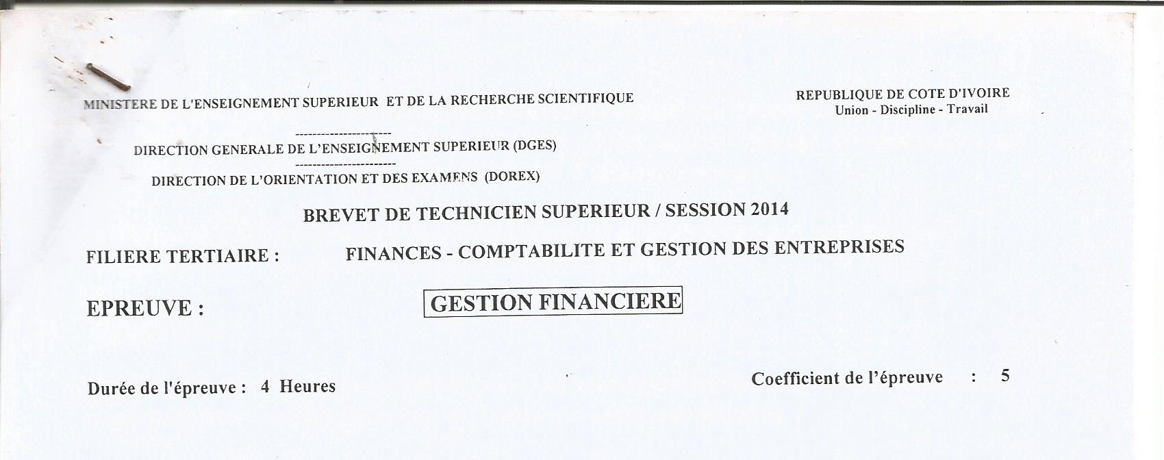 BTS FCGE GESTION FINANCIERE Session 2014
