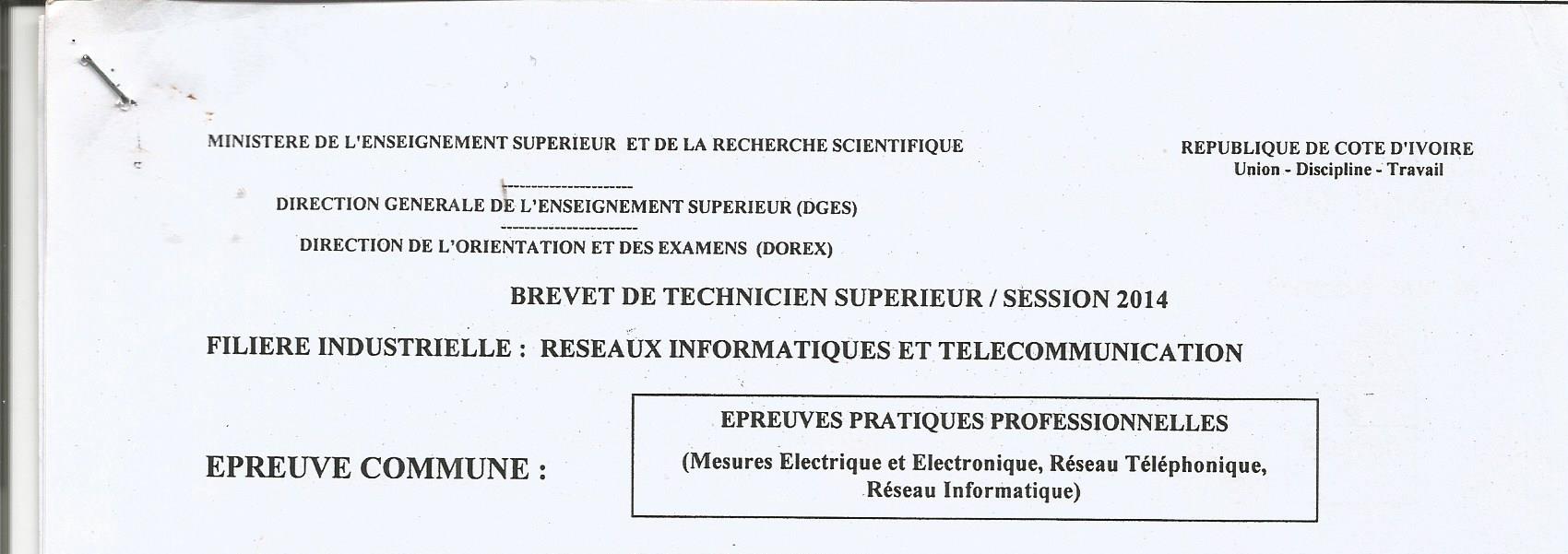 BTS RIT EPP RESEAUX TELEPHONIQUES Session 2014