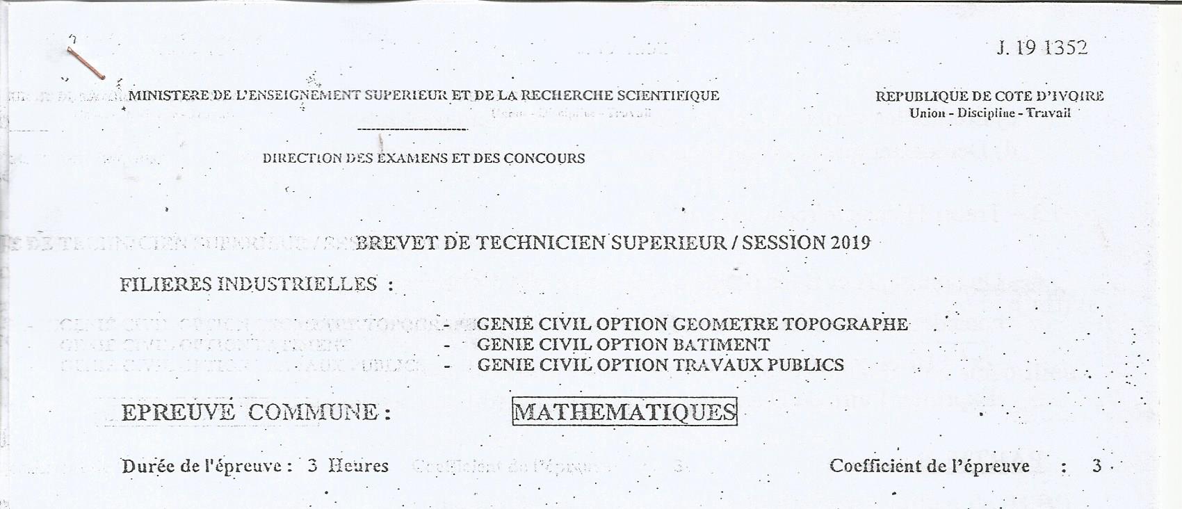 BTS GGT MATHEMATIQUES Session 2019