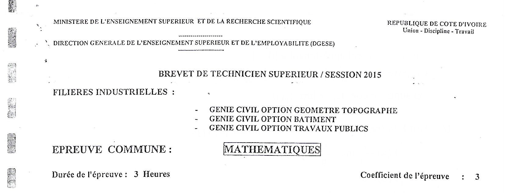 BTS GGT MATHEMATIQUES Session 2015