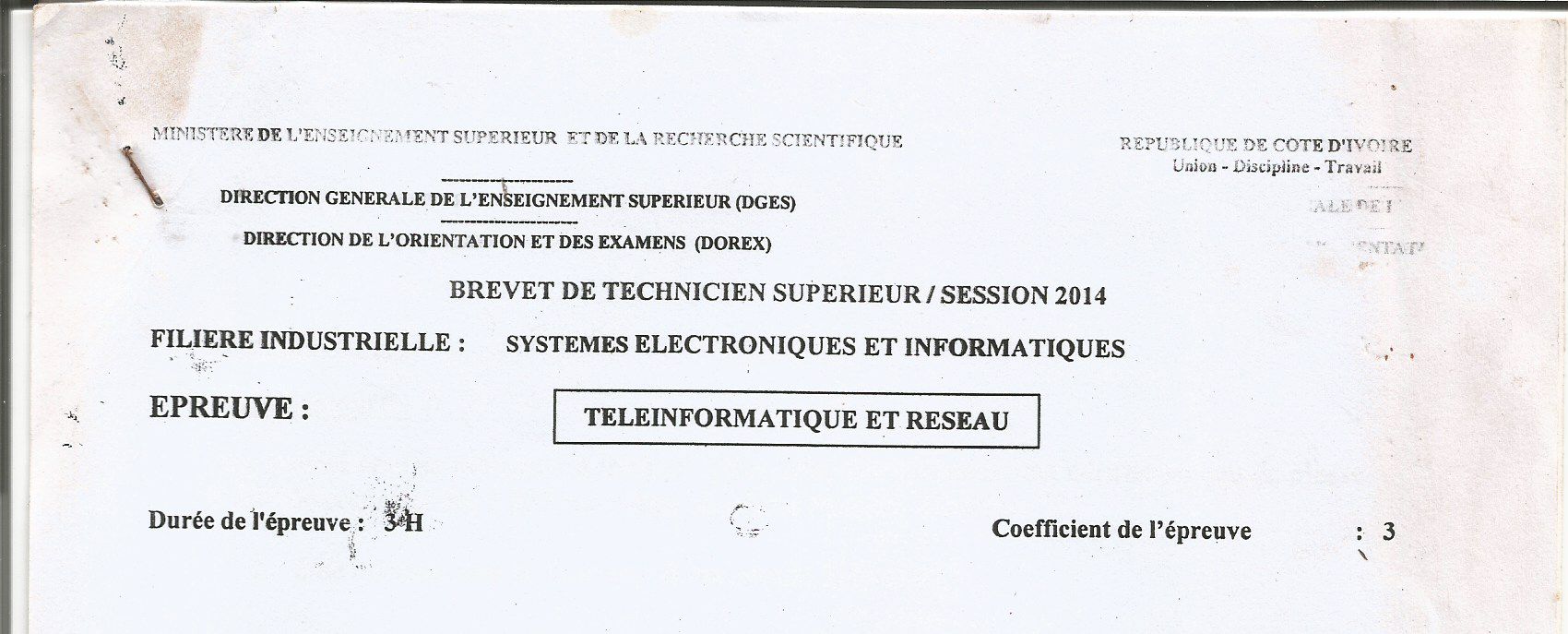 BTS SEI TELEINFORMATIQUE ET RESEAU Session 2014